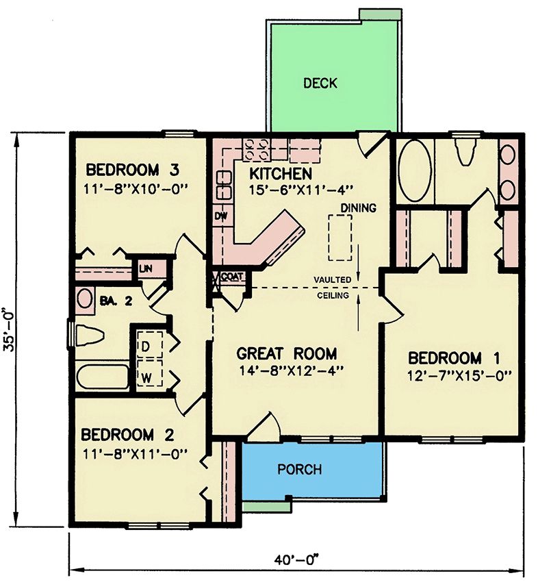 In summary, Plan 25866GE offers a well‐balanced country ranch home: compact yet functional, with three bedrooms, two baths, and a layout that prioritizes privacy for the master. The outdoor spaces — front porch and rear deck — enhance living without bloating the footprint. A great choice if you want modest size but good comfort and style.