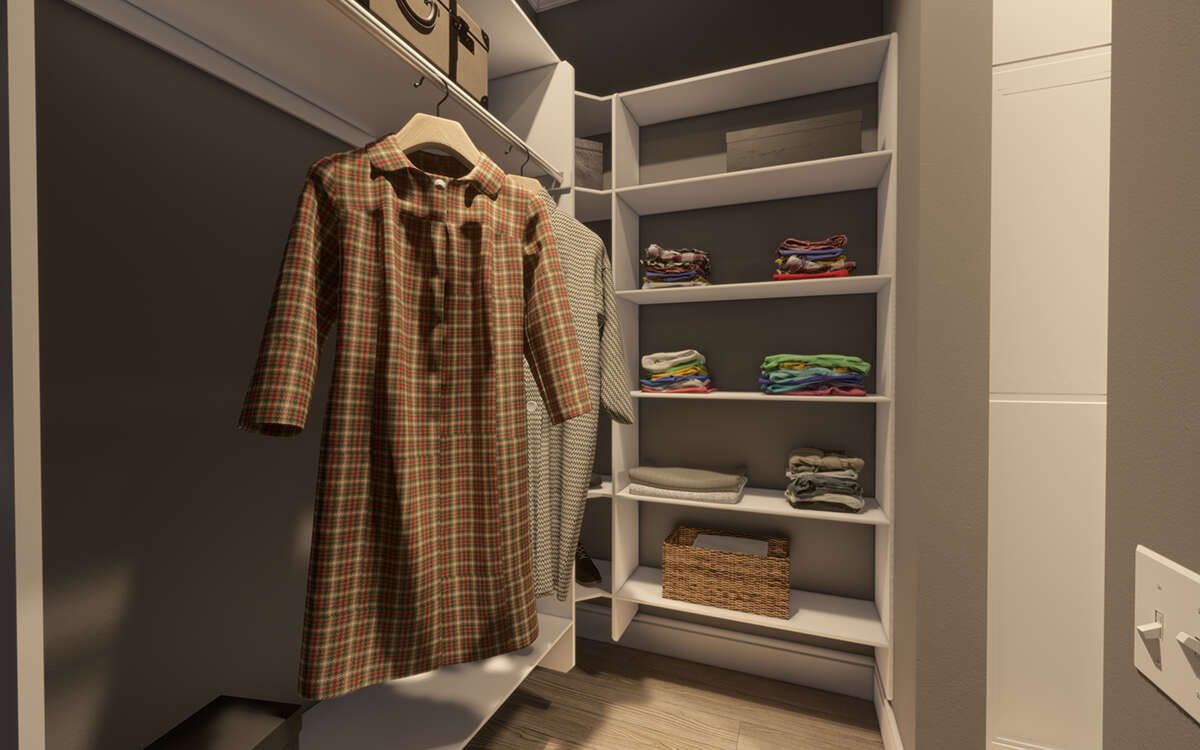 Storage inside is handled via bedroom closets and efficient use of space in the common areas and hallways. Laundry is on main level near bedrooms.