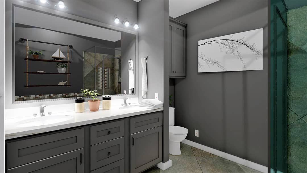 Bedrooms 2 and 3 are on the opposite side, sharing a large bathroom with a tub/shower combination and ample storage.