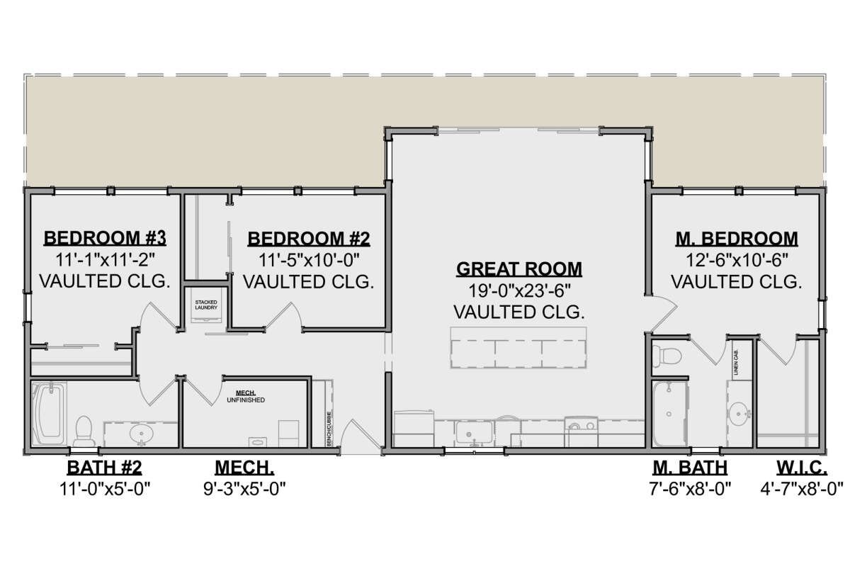 Storage & work zones are efficient, with the layout minimizing unnecessary hall space and maximizing usability. With 2×6 framing, wall cavities may allow for more insulation or utility chases.