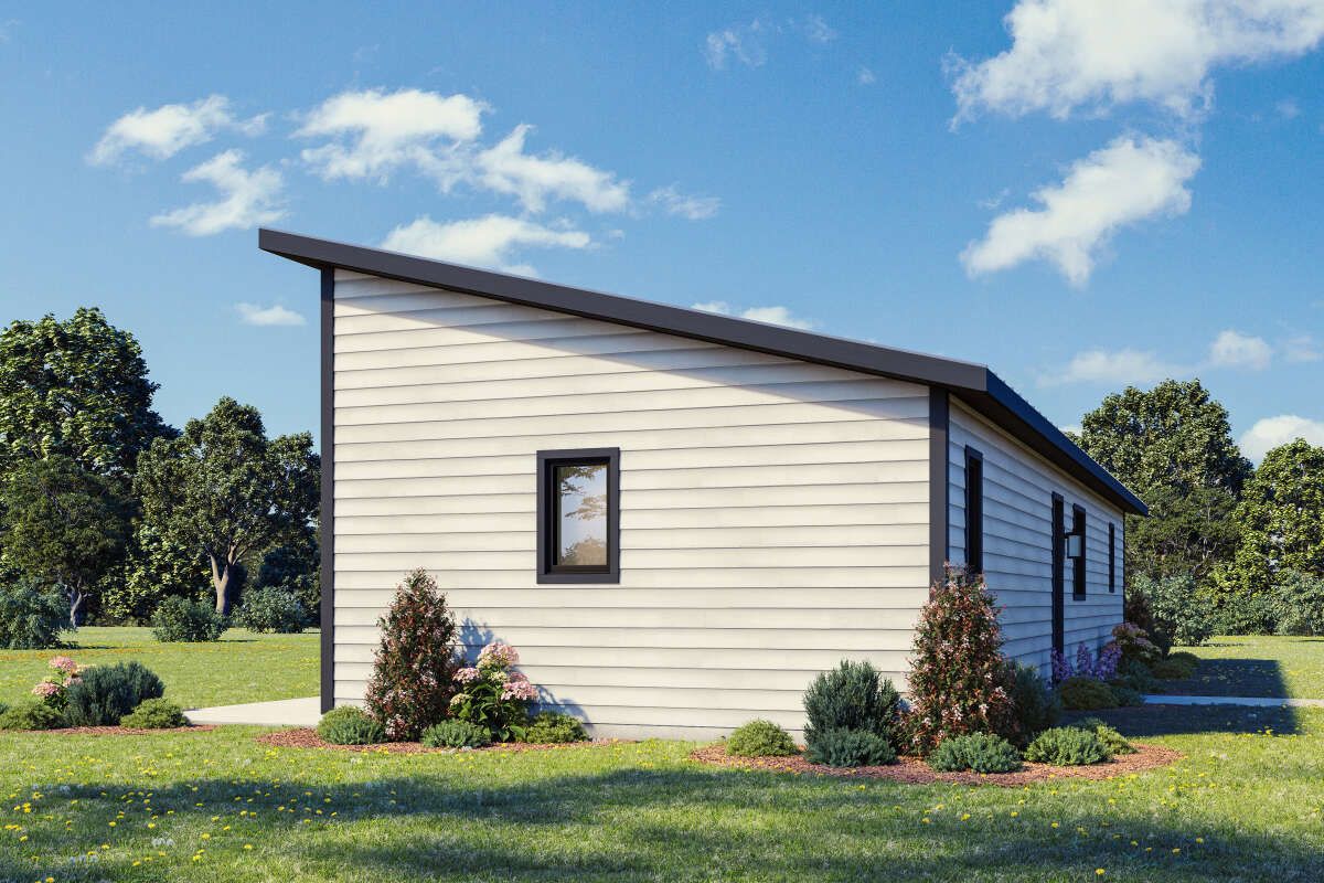 No attached garage is included in the base plan; parking or vehicle shelter would likely have to be added separately.