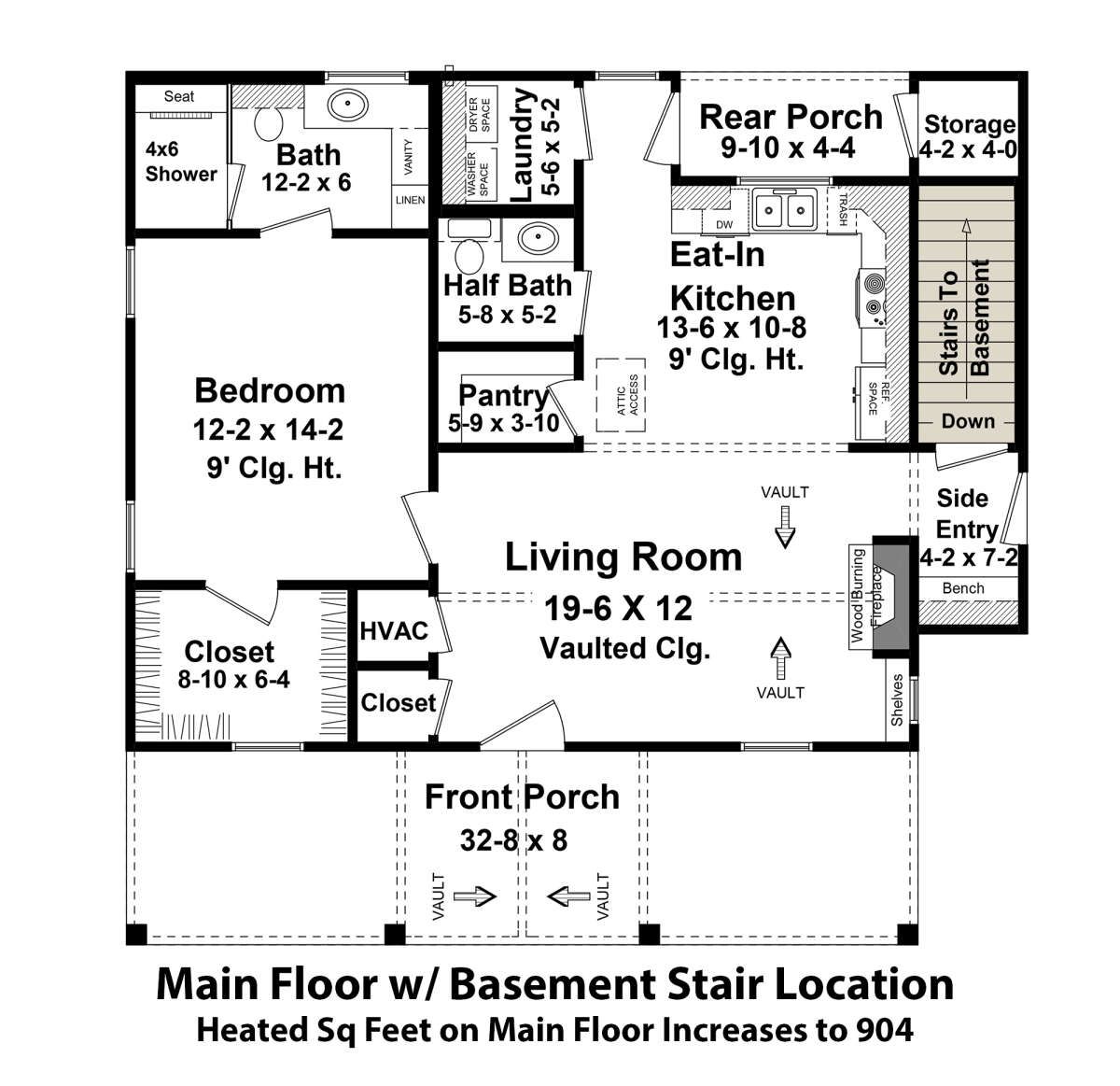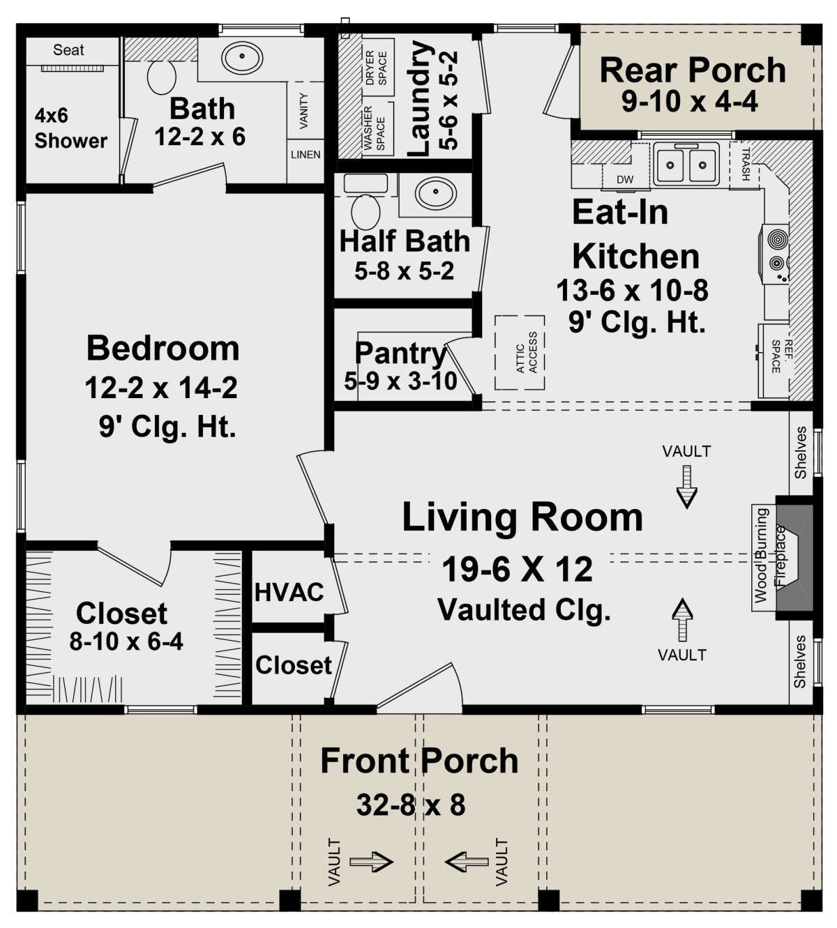 Cottage Plan — 872 Sq Ft, 1 Bedroom & 1½ Bathrooms