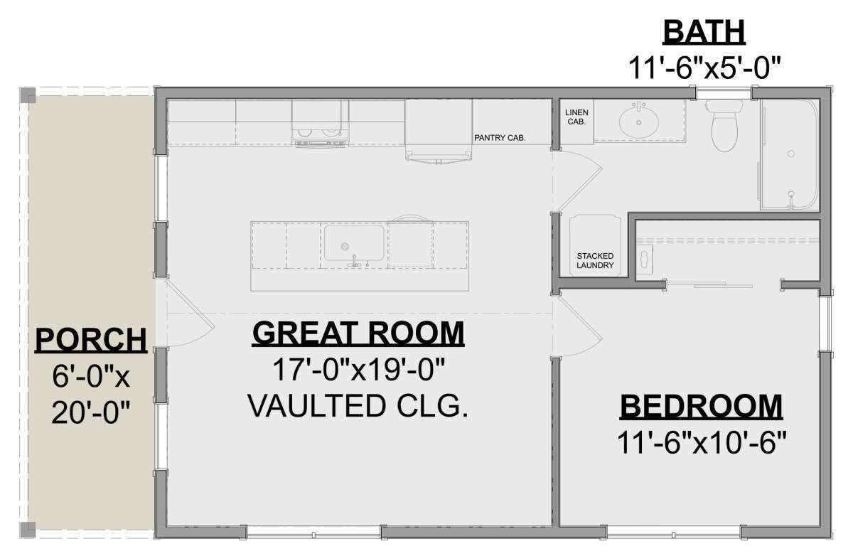 Cottage Plan — (600 Sq Ft, 1 Bedroom & 1 Bathroom)