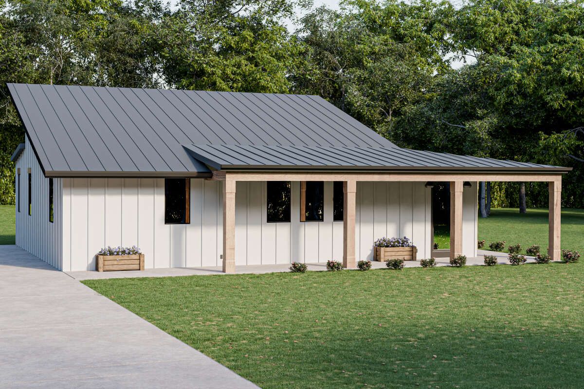 The estimated cost to build this home in the United States ranges between $300,000 – $450,000, depending on region, material finishes, foundation type, labor, and whether the outdoor porch/patio is built with premium materials.
