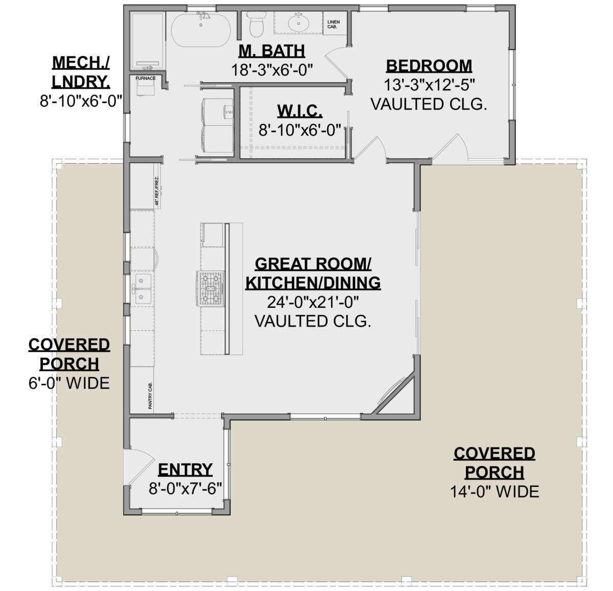 Overall, Plan 1462-00165 is a refined choice for someone seeking comfortable one-bedroom living with strong indoor-outdoor balance. It’s ideal as a retreat, guest house, or primary home for a minimalist lifestyle—efficient, stylish, and pleasantly open.