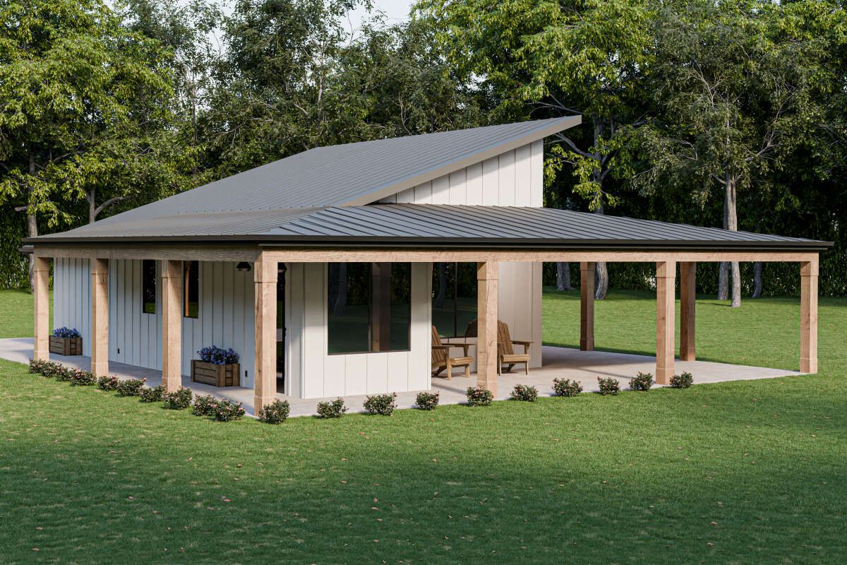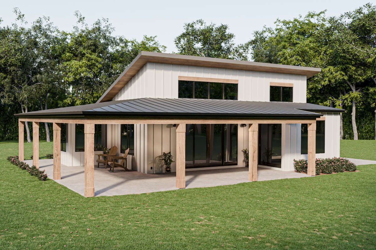 The estimated cost to build this home in the United States ranges between $300,000 – $450,000, depending on region, material finishes, foundation type, labor, and whether the outdoor porch/patio is built with premium materials.