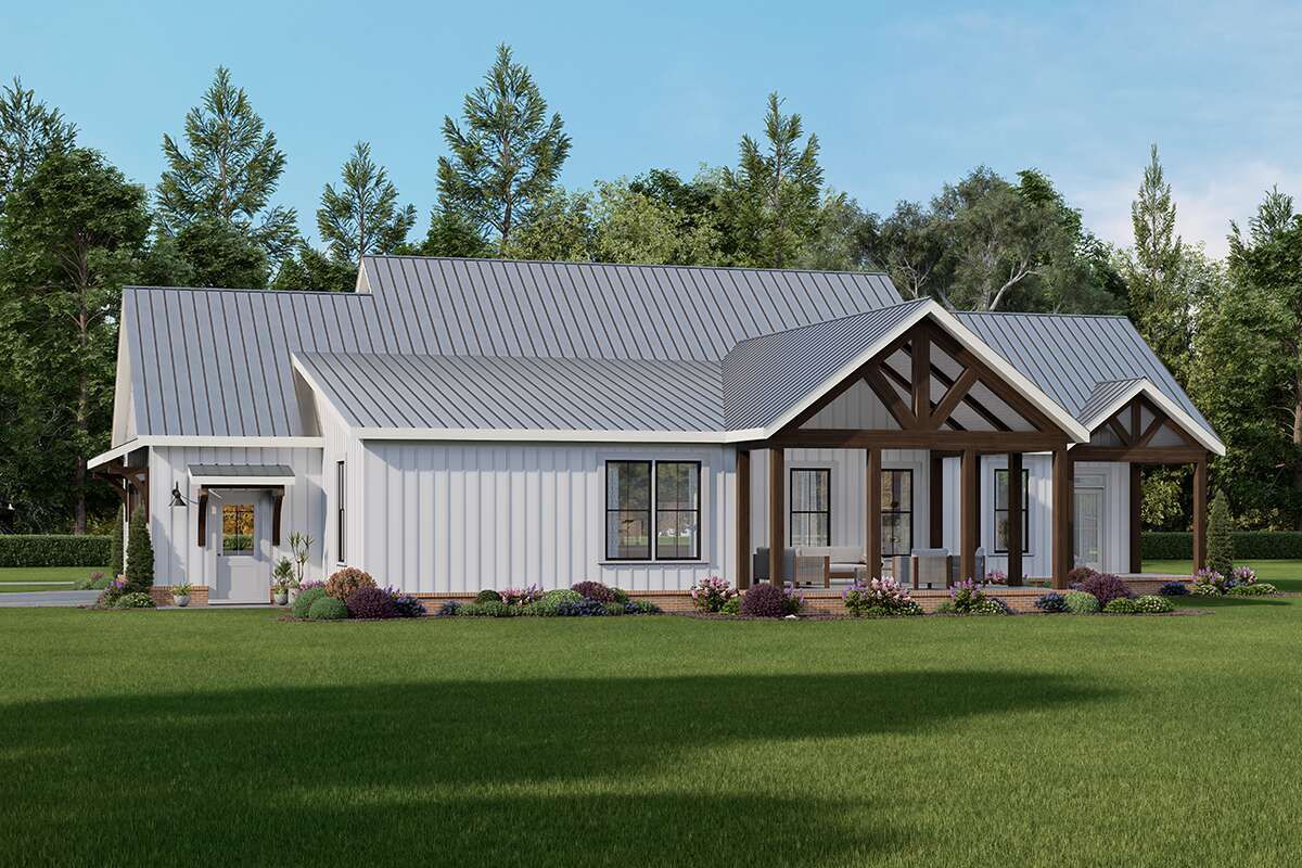 In summary, Plan 009-00456 offers a balanced blend of modern farmhouse aesthetic, generous outdoor porches, and functional private and shared spaces. With 3 bedrooms, 2 full bathrooms, a roomy garage, and abundant outdoor living, it’s ideal for those wanting stylish living without going to a huge scale. Warm, appealing, and thoughtfully designed.