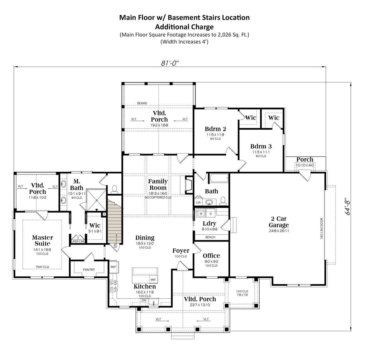 No bonus room or second story is included in the base design—it’s strictly single-story. However, the plan offers paid foundation options: slab, crawlspace, basement, or walk-out basement, which could allow for future expansion beneath ground.