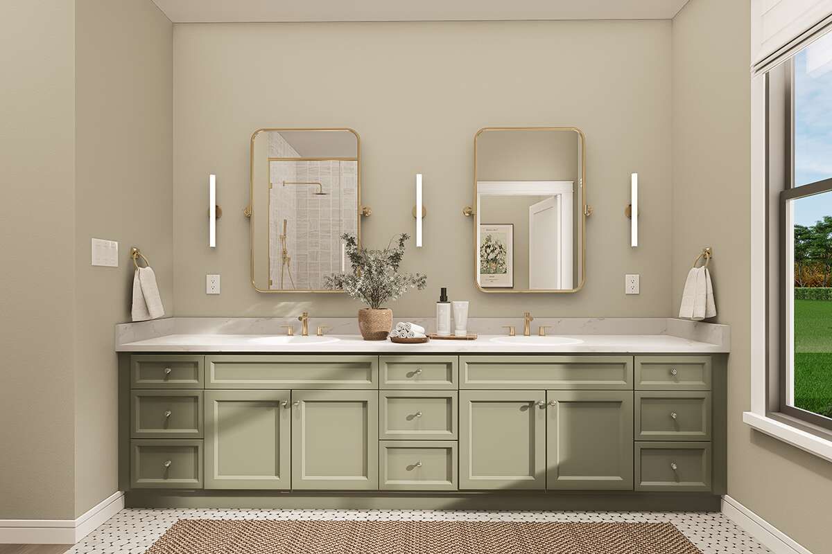 Storage in the home includes bedroom closets, the pantry, and likely linen closets in bathrooms. The plan supports functional storage integration.