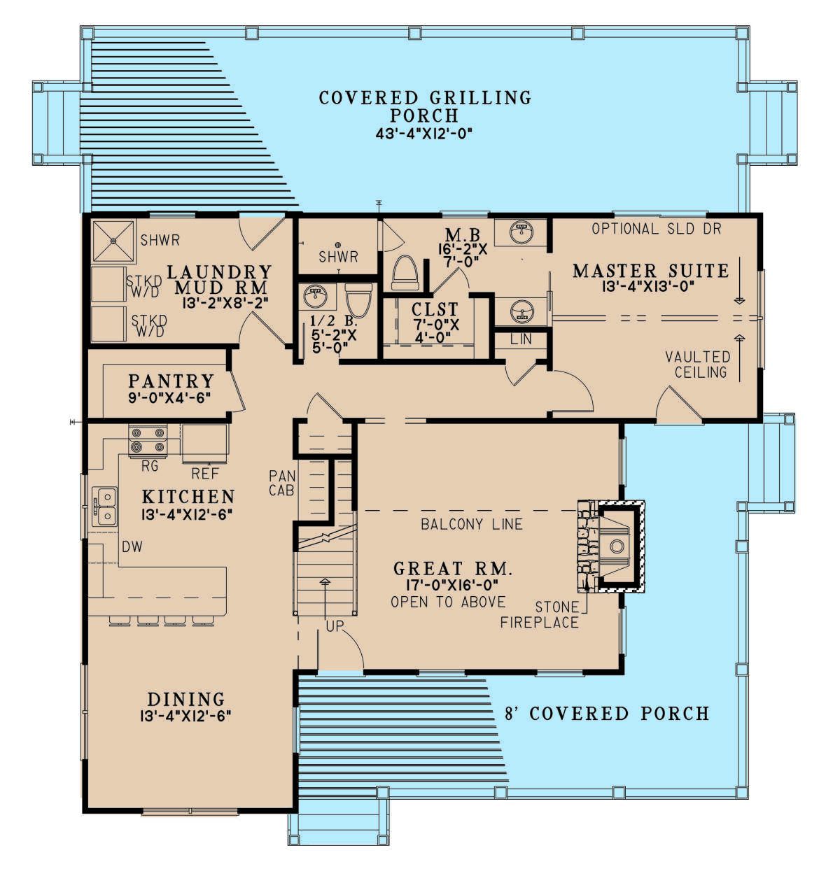 Storage is handled via bedroom closets, probably linen closets, mudroom/entry storage, and cabinetry. The footprint doesn’t waste space on hallways.