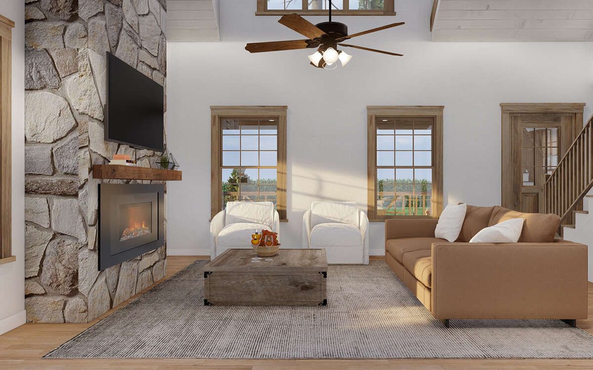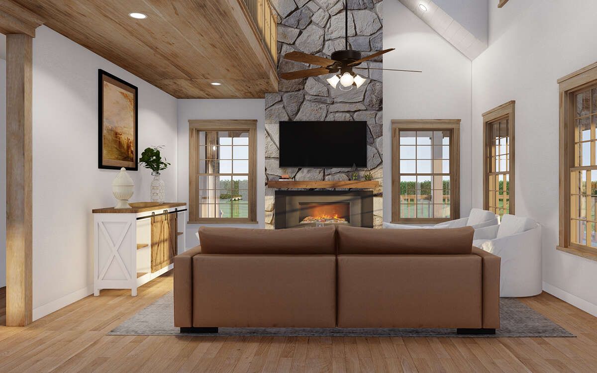 Ceiling height is 8 ft on both first and second floors. While that’s standard rather than grand, the open plan and cabin aesthetic make spaces feel cozy rather than cramped.