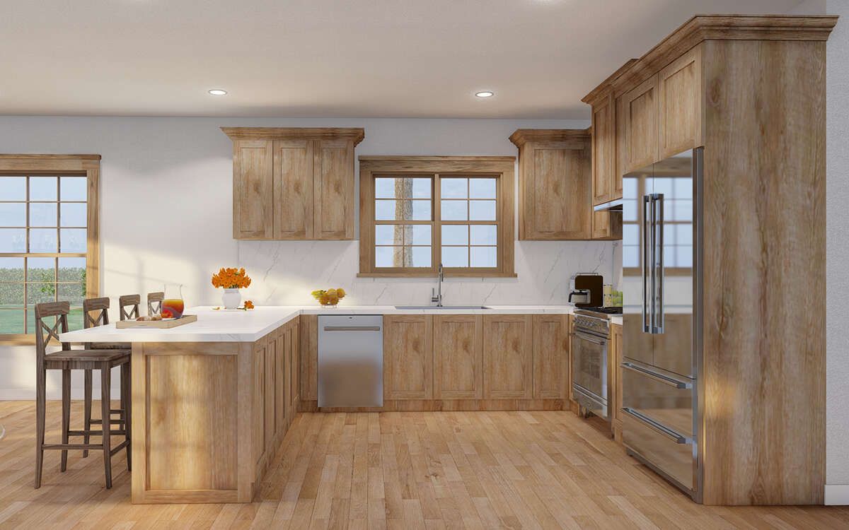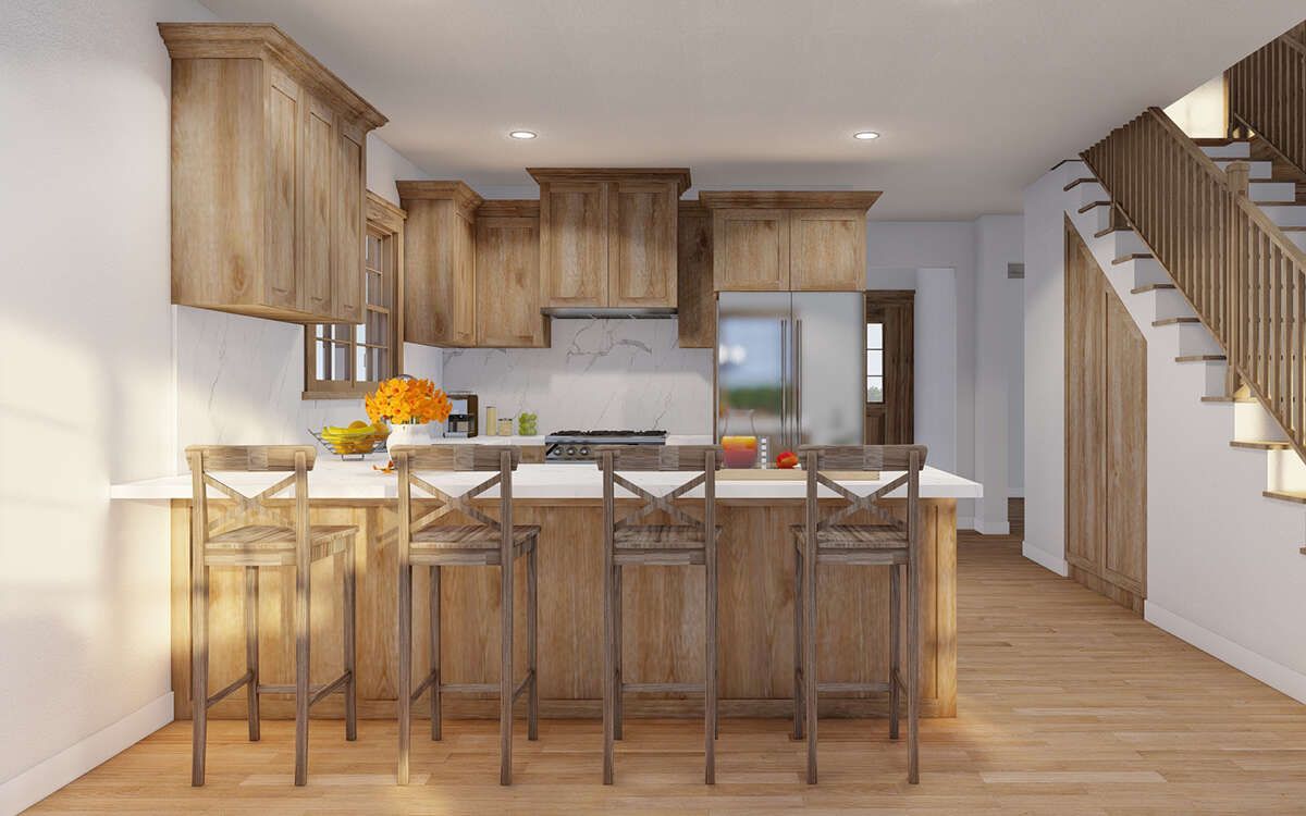 The kitchen is part of the main open living area. Details include typical cabinetry, countertop workspace, and likely an island or peninsula for serving / casual dining (though specific island detail is not called out in the summary).