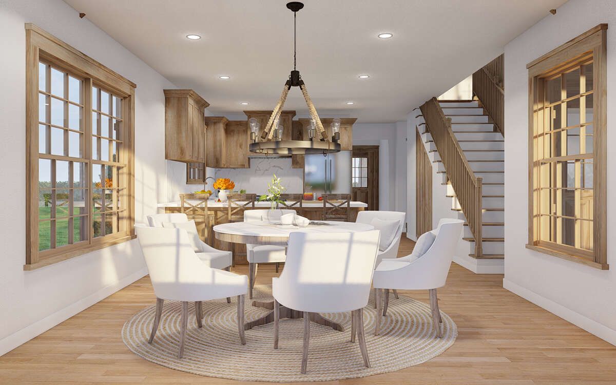 Proximity to dining and outdoor living (porches) helps use of the kitchen for entertaining and daily living.