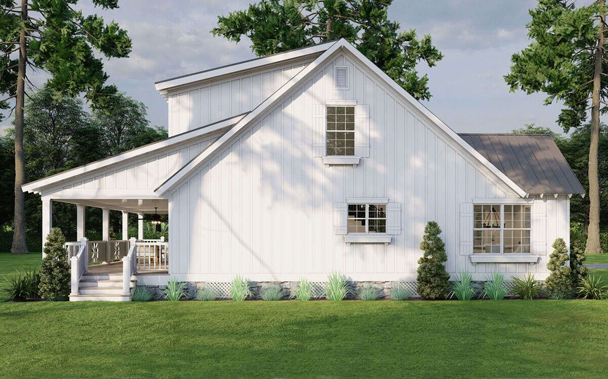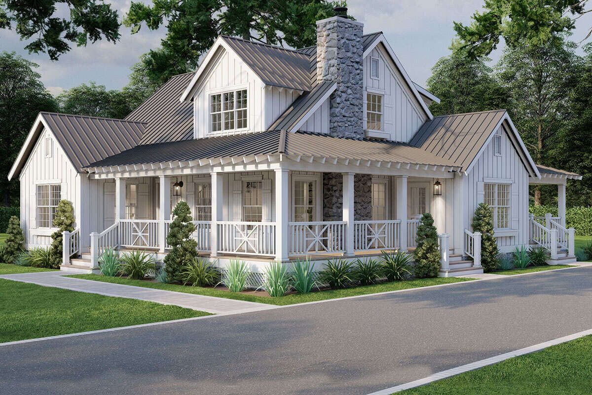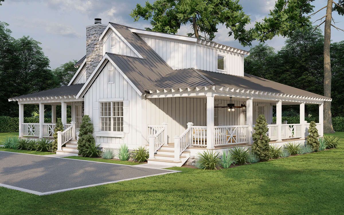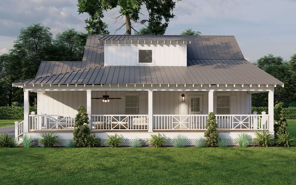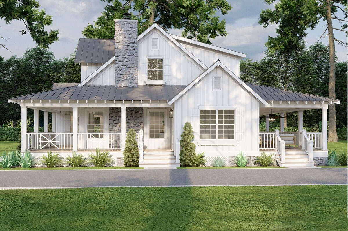 The generous porches and potential foundation options (slab or crawlspace by default, basement foundation is a paid option) offer ways to extend usable space or storage.