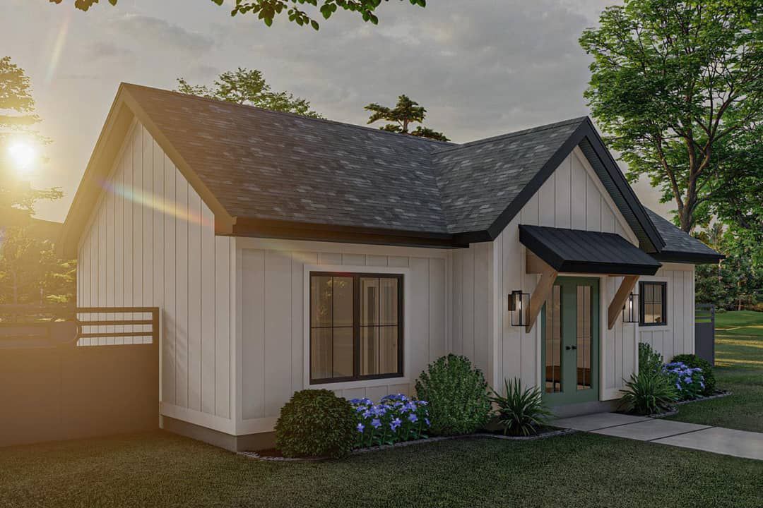 Plan 623069DJ is a smart, compact ADU or guest house solution. With thoughtful touches like a mudroom, open living with an island, and a sliding door to a rear patio, it feels far more spacious than its 756 sq ft suggests. Ideal for small households, guest suites, or secondary dwelling uses—this design balances utility, charm, and smart space planning.