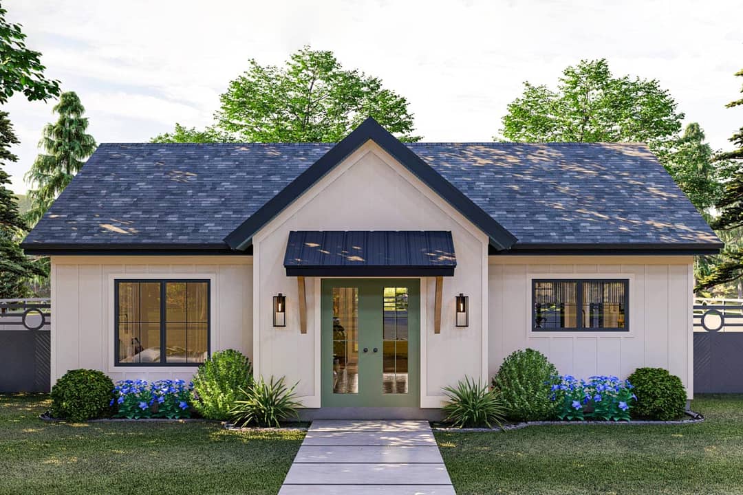 Plan 623069DJ is a smart, compact ADU or guest house solution. With thoughtful touches like a mudroom, open living with an island, and a sliding door to a rear patio, it feels far more spacious than its 756 sq ft suggests. Ideal for small households, guest suites, or secondary dwelling uses—this design balances utility, charm, and smart space planning.