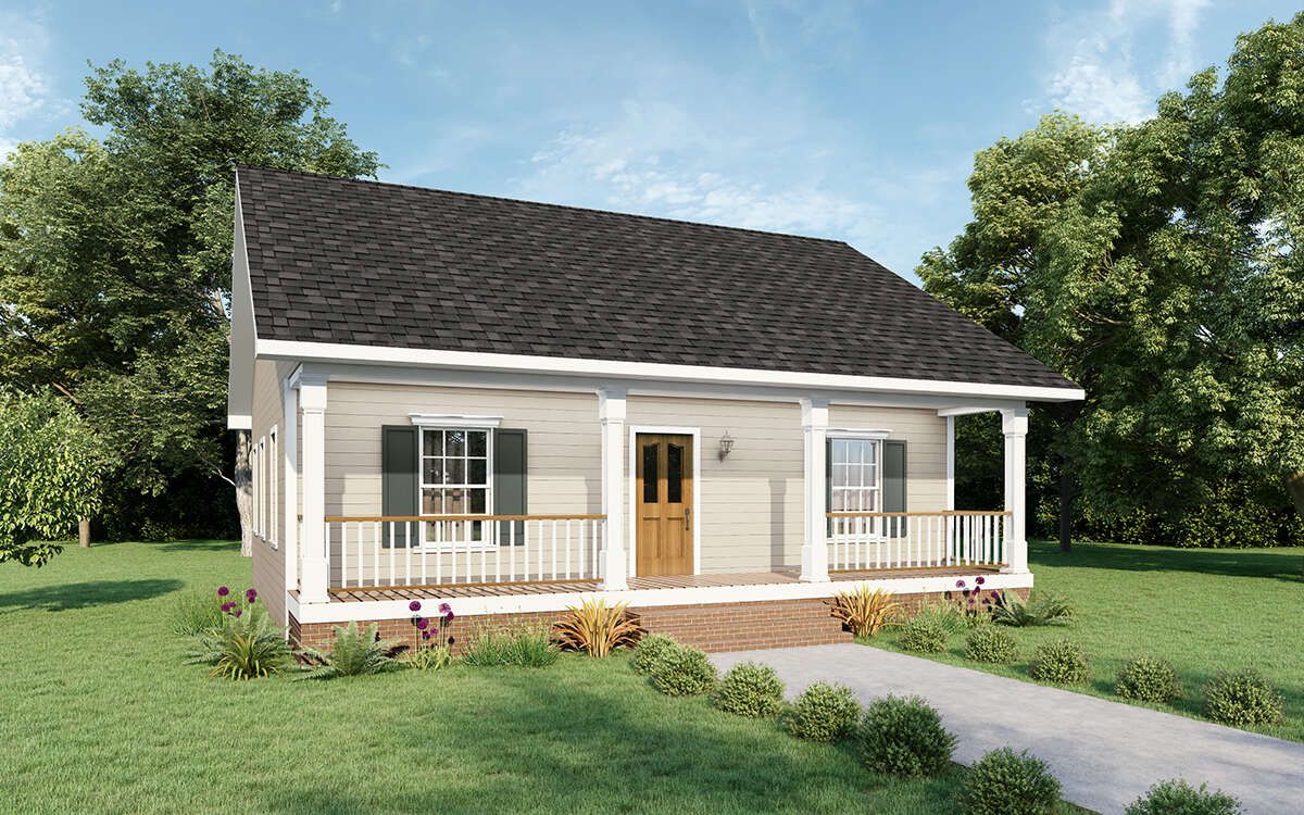 Plan 1776-00003 is a smart, efficient design that proves a home doesn’t have to be large to be livable. With two bedrooms, one bath, an open core, and a sweeping front porch, it offers charm and utility in 1,007 sq ft. A great fit for small households, cottage settings, or as a comfortable “right-size” home.