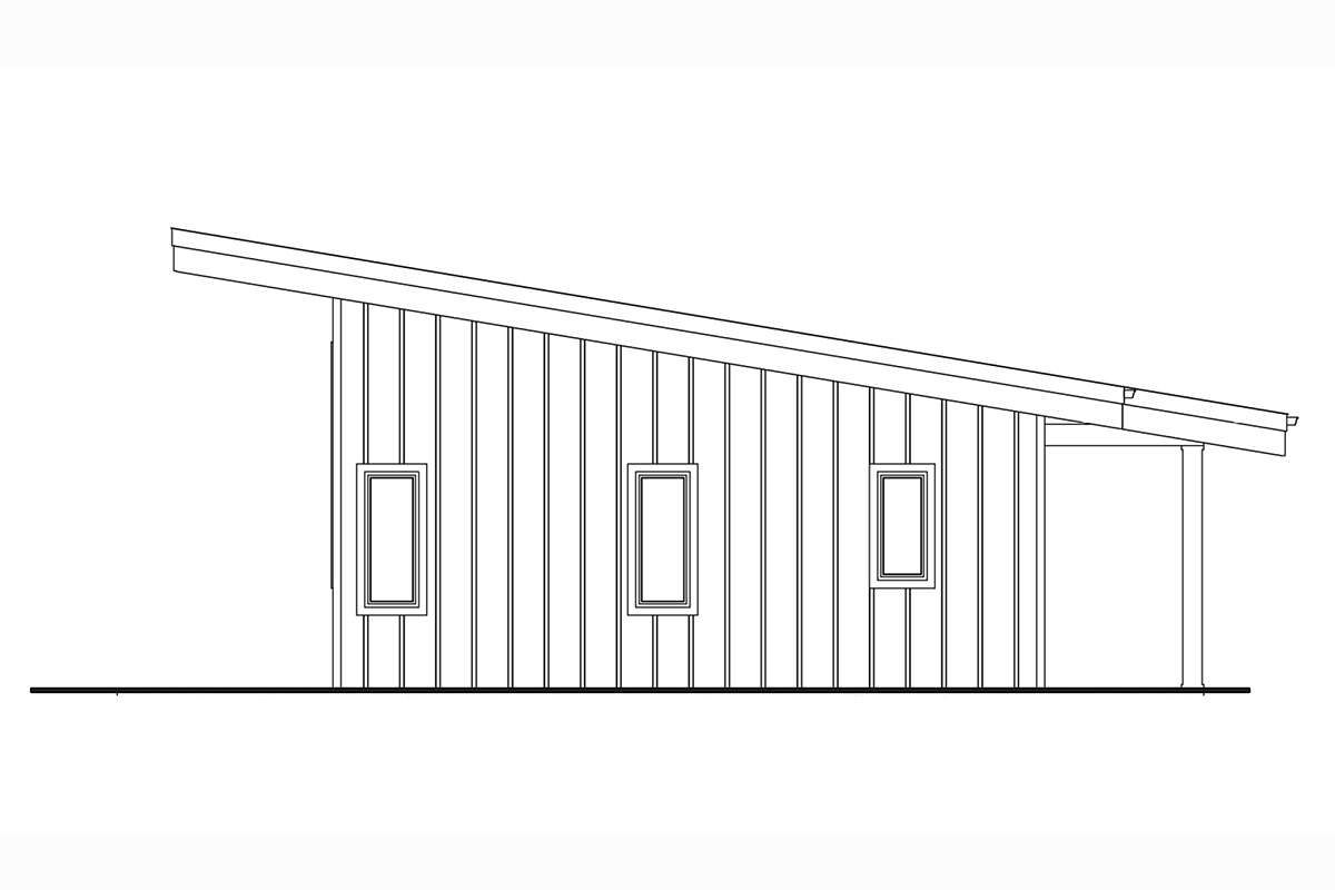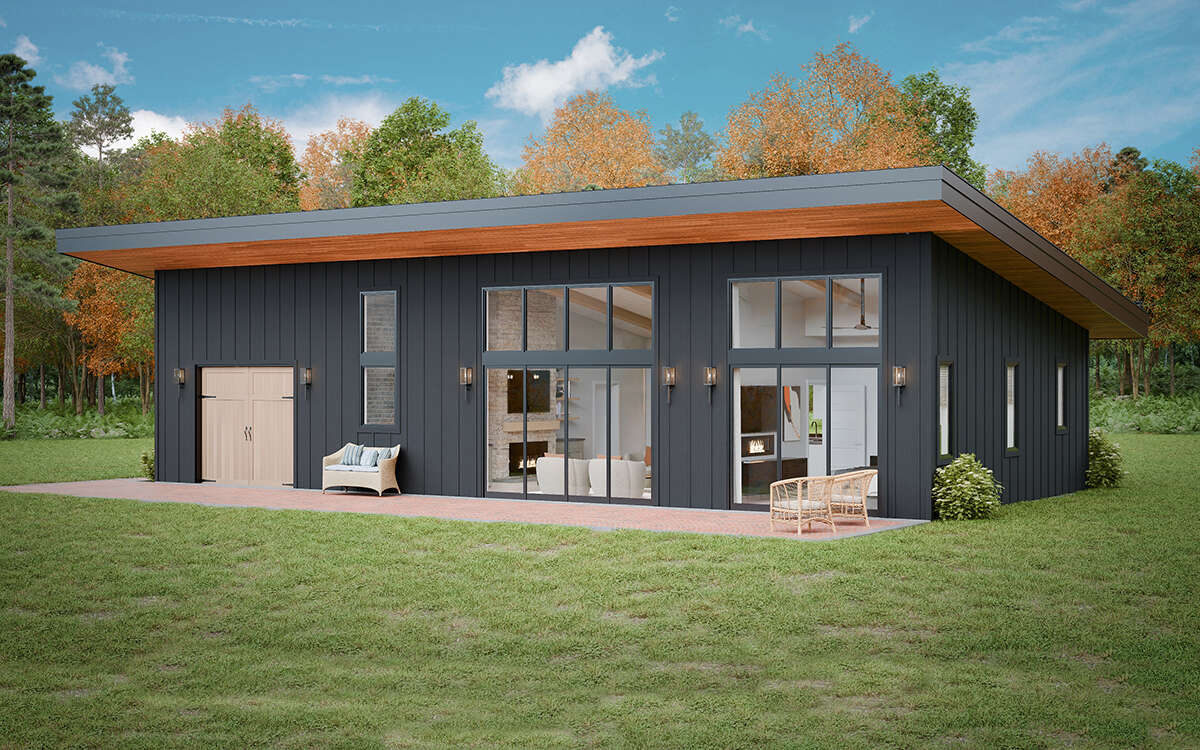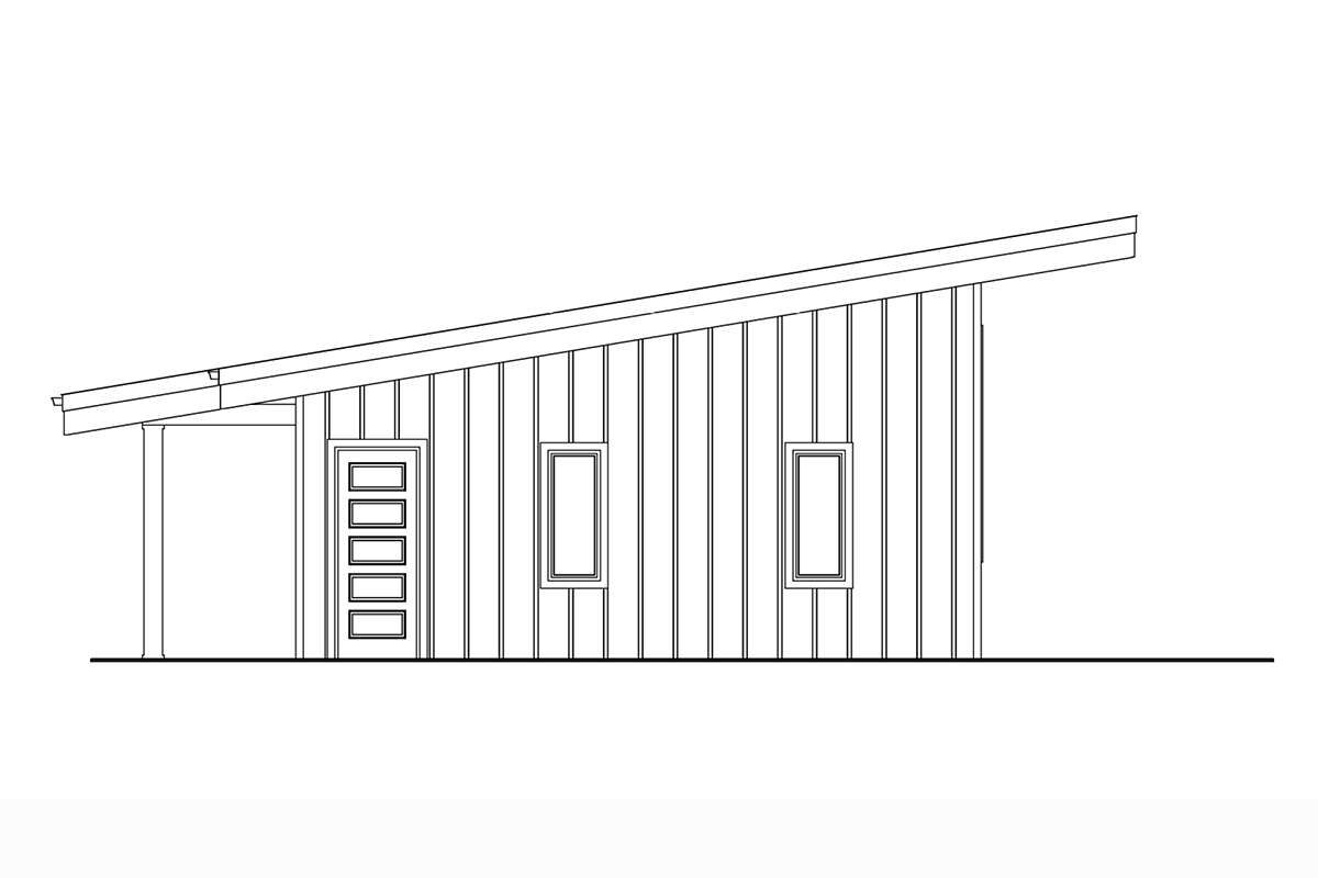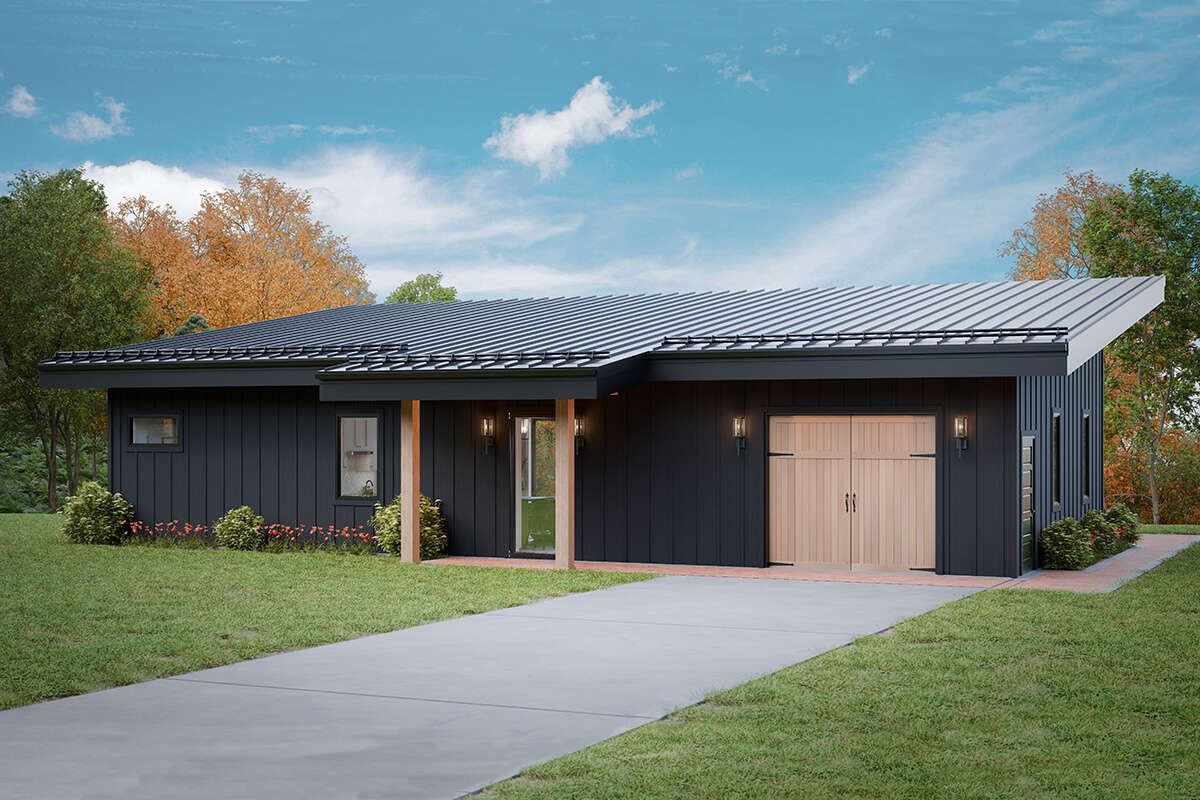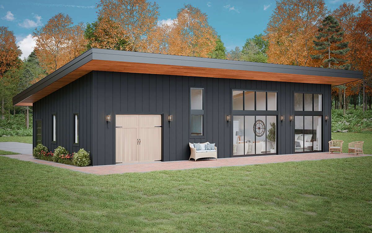 Plan 1958-00050 is a smart modern layout that balances modest size with full amenities. It gives you one bedroom, a full bath plus a half bath, a connected living core, and a generous garage. The clean forms, muted roof pitch, and functional plan make it a strong choice for a comfortable, efficient modern home.