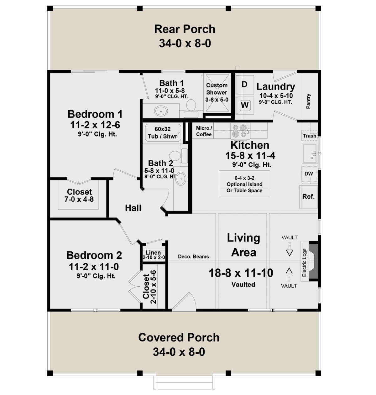 Plan 348-00345 delivers a refined, scaled modern farmhouse design with two bedrooms, two baths, balanced indoor/outdoor flow, and generous porch areas. Its efficient layout avoids wasted space while still feeling open and welcoming. For those seeking modest size, aesthetic appeal, and functional comfort, this is a strong candidates.