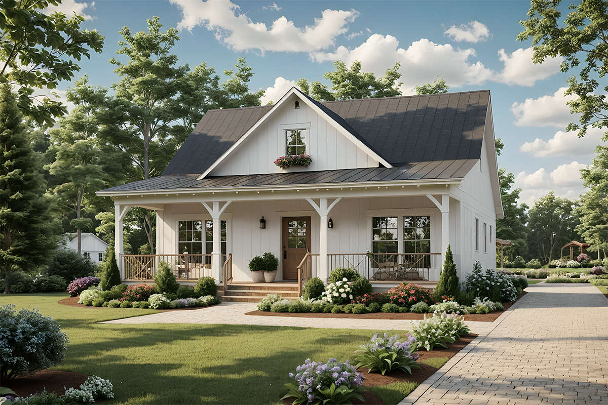 This modern farmhouse offers **1,020 heated square feet** in a clean one-story format.