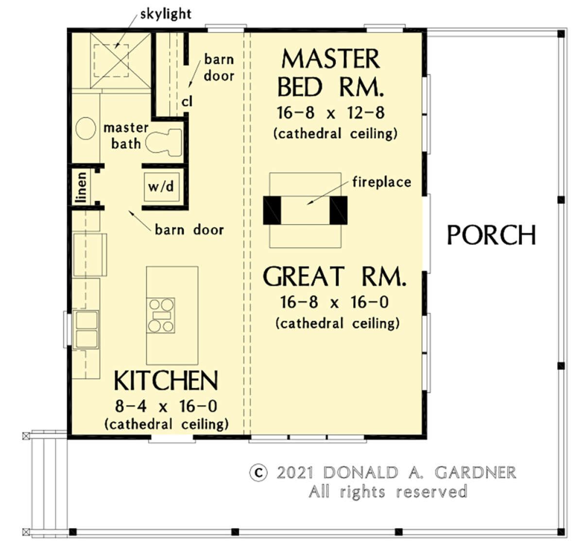 The circulation is efficient, with minimal wasted hallway space—great for such a compact cabin.