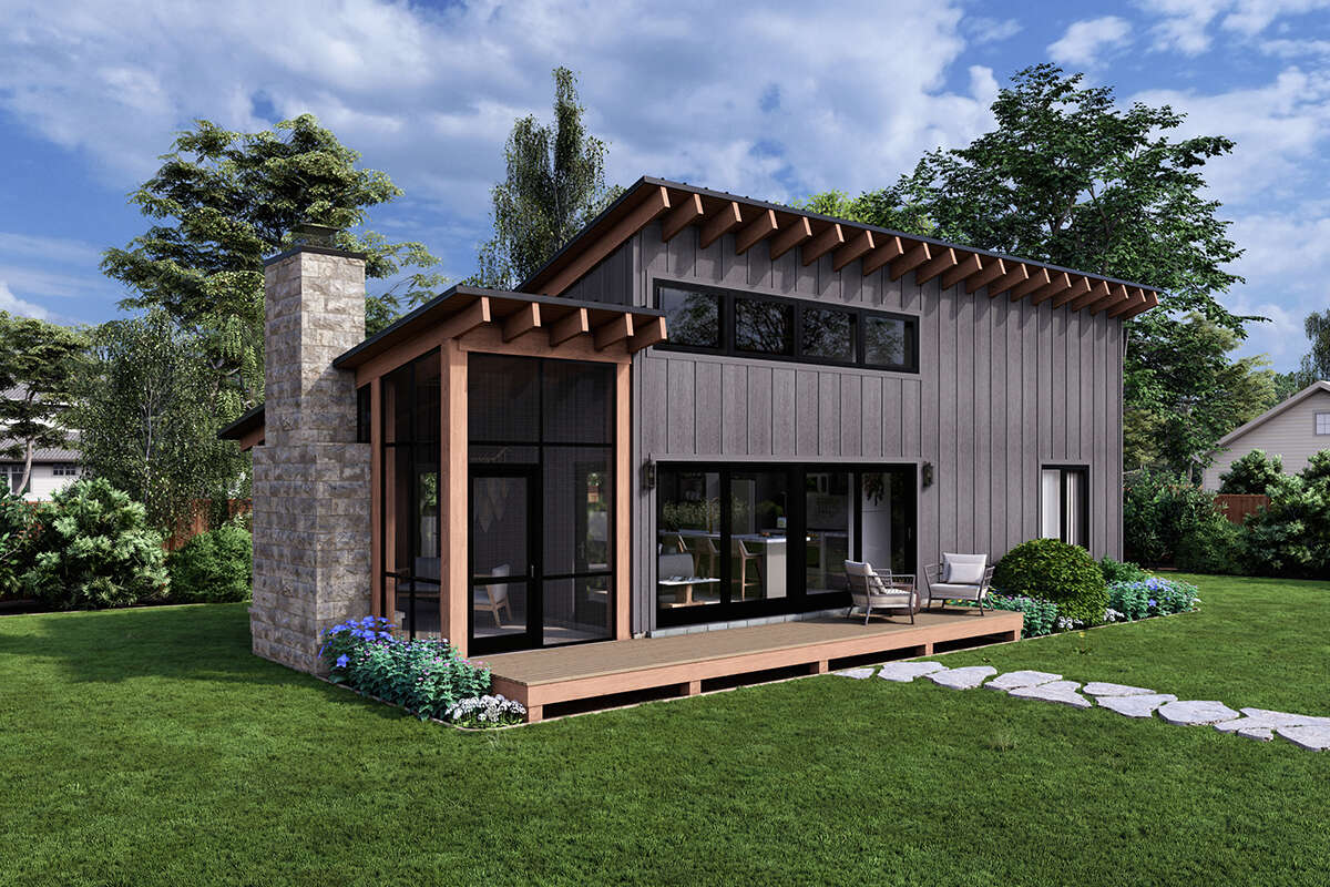 This cabin plan proves that small can still feel complete. With its open interior, single bedroom, full bath, and a welcoming porch, it delivers the essentials in a package that’s cozy yet functional. Perfect as a primary cabin, guest retreat, or downsized living home with character.