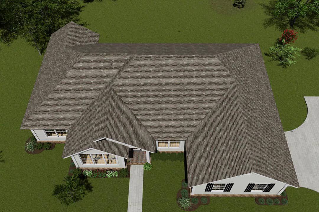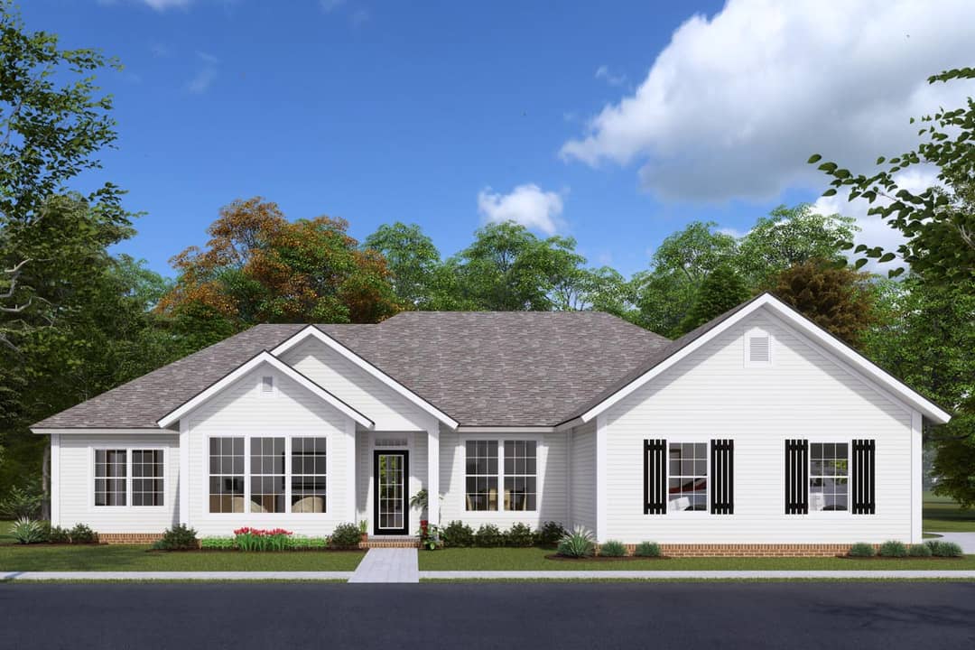 The estimated cost to build this home in the United States ranges between $450,000 – $650,000, depending on finished materials, foundation type, site conditions, and regional cost differences.This split-bedroom ranch with a dedicated study balances privacy, function, and connectivity in one level. The open core brings families together while the wings provide separation. For those wanting one-story living with flexibility and modern sensibility, this plan is a solid option.