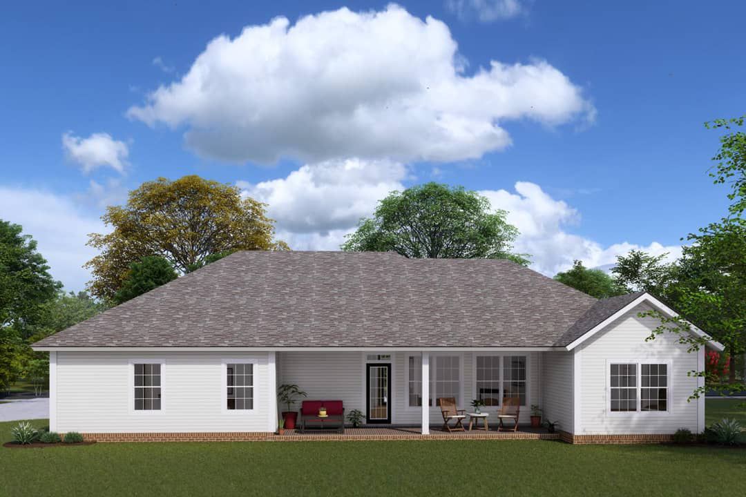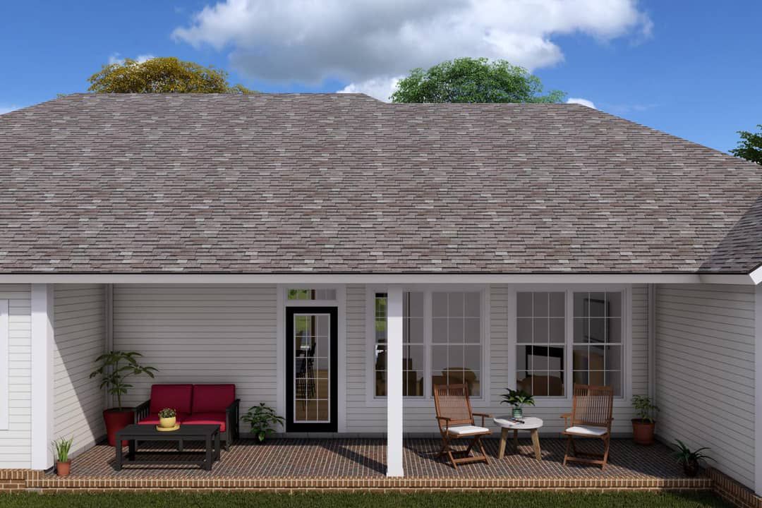 A rear patio or covered porch is probable, accessible from the living area, extending indoor enjoyment outdoors.The front entry is sheltered, creating a comfortable transitional space into the home.