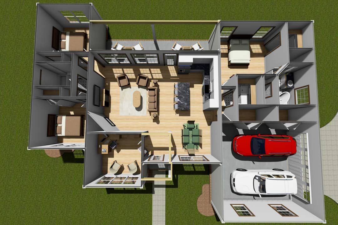 Compact Comfort: Designing a Stylish 60 sqm Two-Bedroom Bungalow