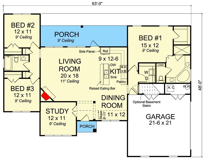 Split-Bedroom Ranch with Study — Plan (1,631 Sq Ft)