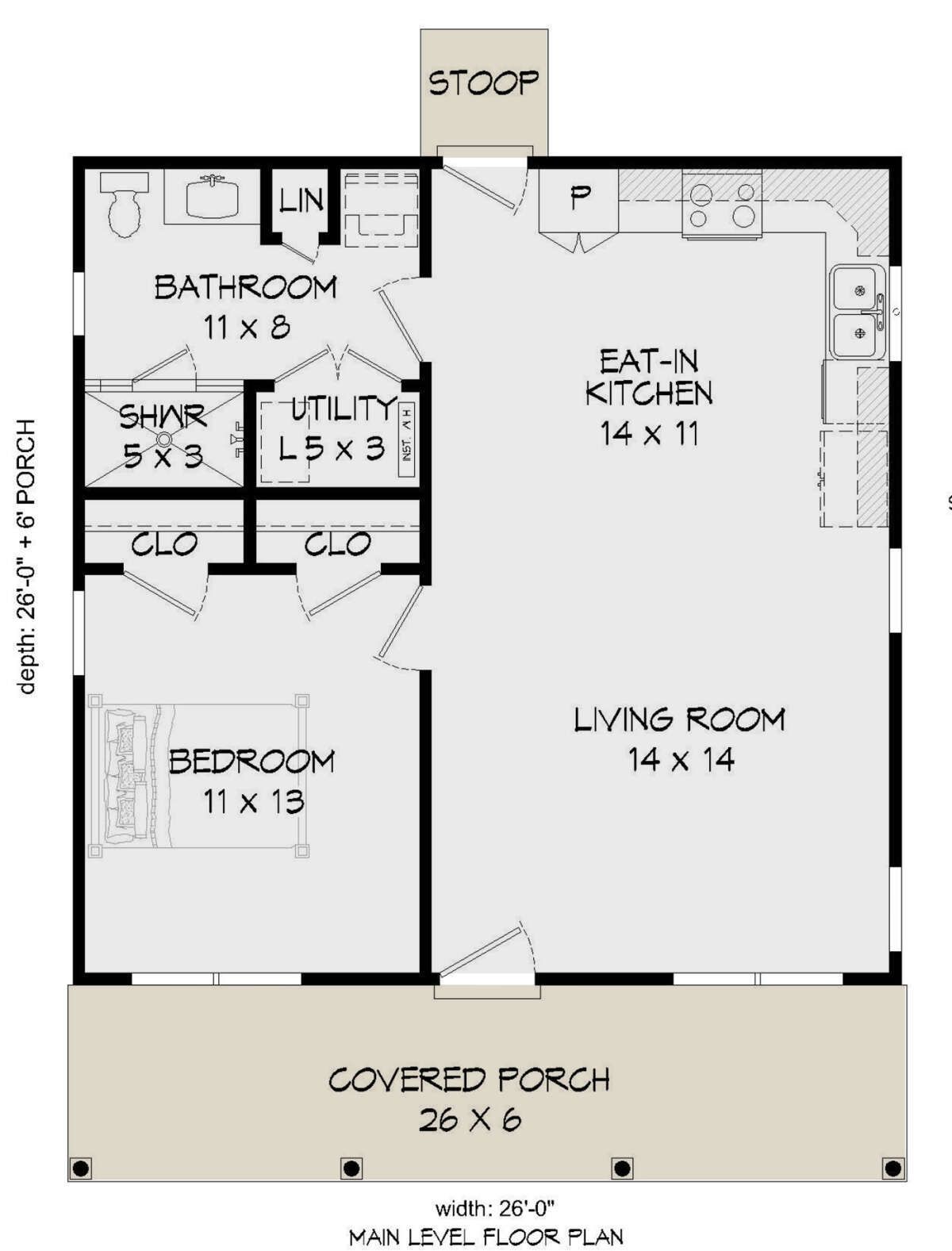 The plan’s overall width is **26 ft** and depth is **26 ft 6 in**.