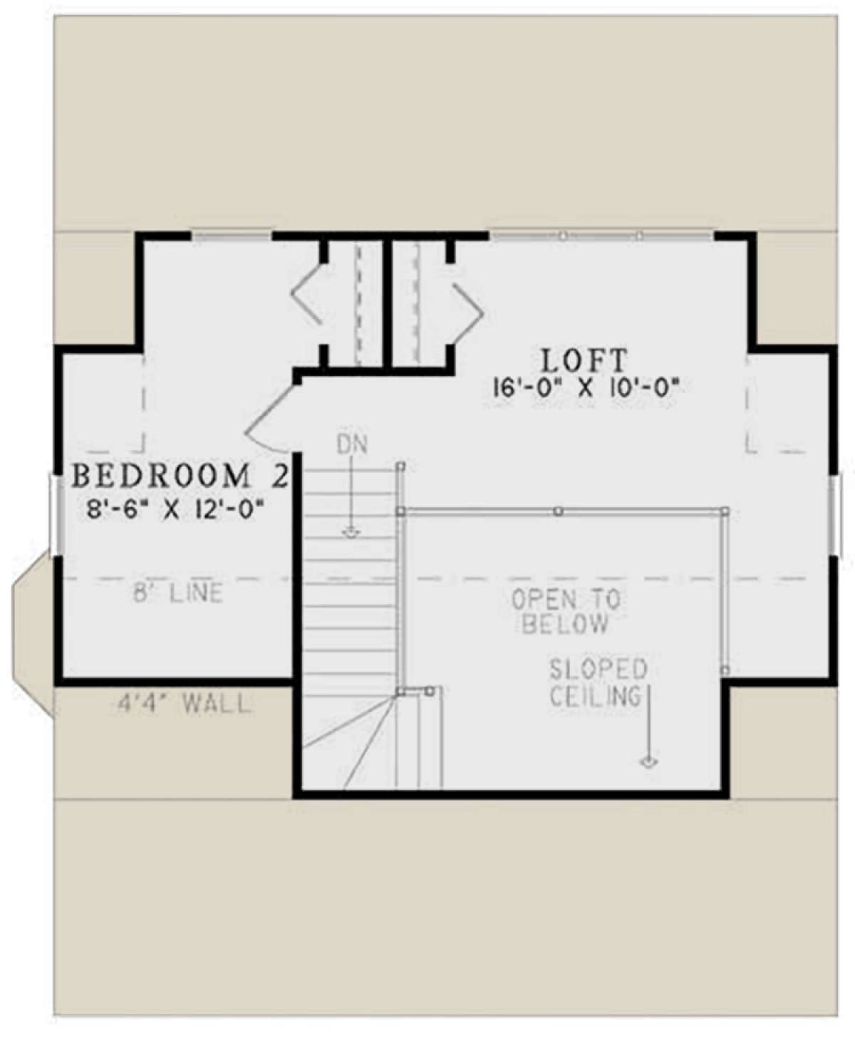 This plan provides **2 bedrooms** overall (1 on main floor, 1 in loft).