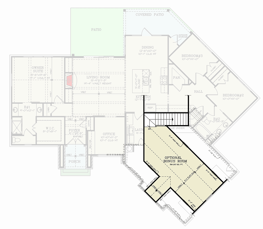 Stairs from the garage zone lead up to the bonus room, leaving the main footprint clean and undisturbed.