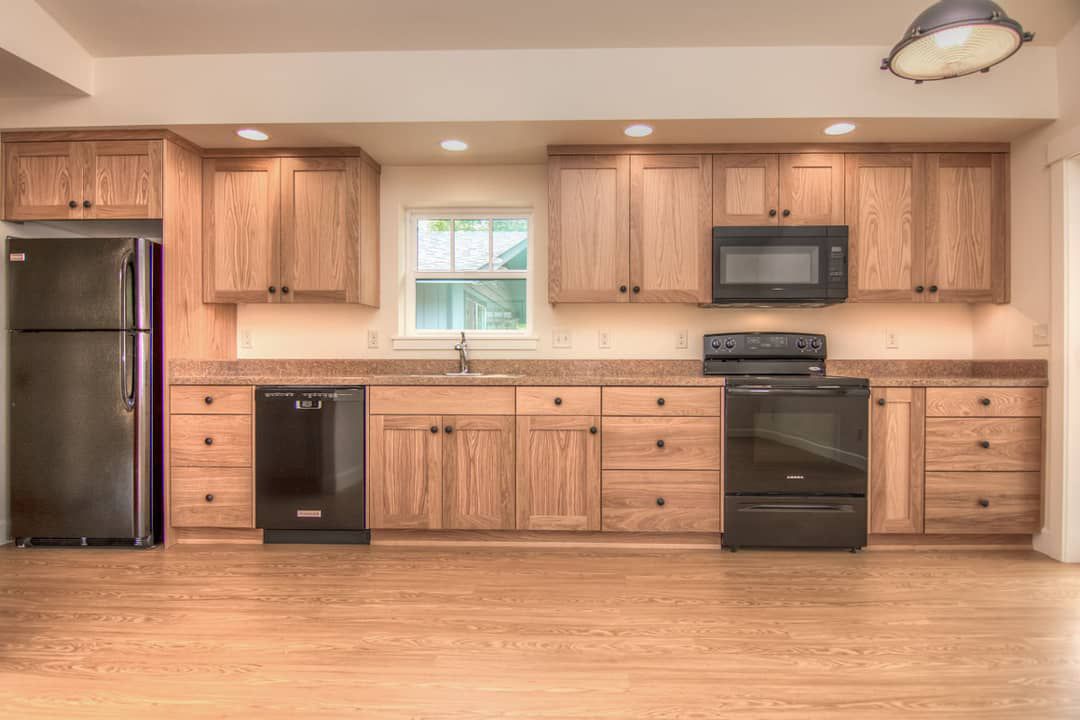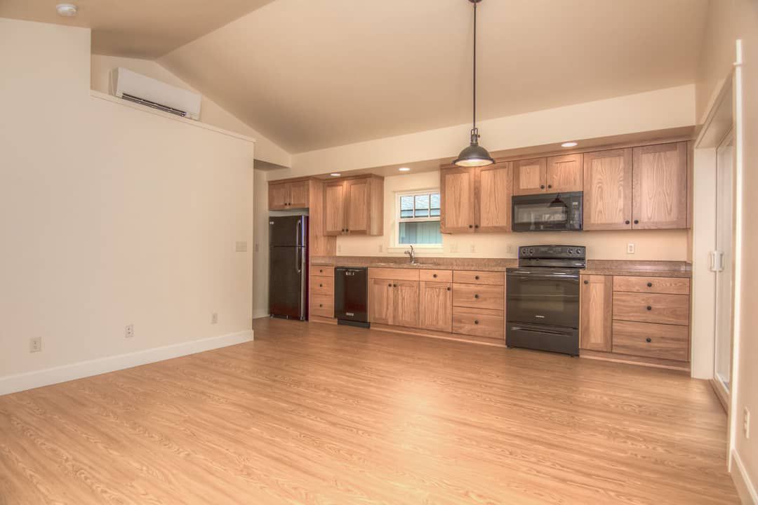 While specific cabinetry layouts are not published, the efficient plan suggests a linear or L-shaped run with space for appliances and counters.