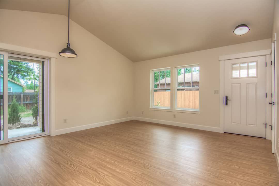 The vaulted great room draws your eye upward and helps a small space feel larger.