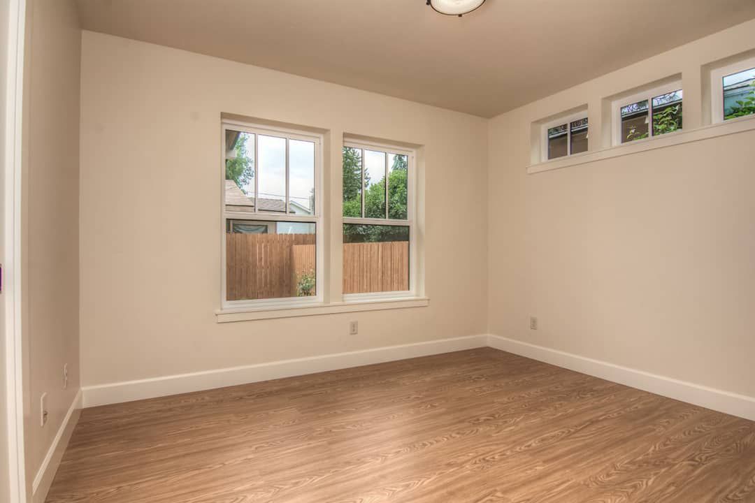 The two guest bedrooms share a hall bathroom, placed between them to minimize wasted spacing.