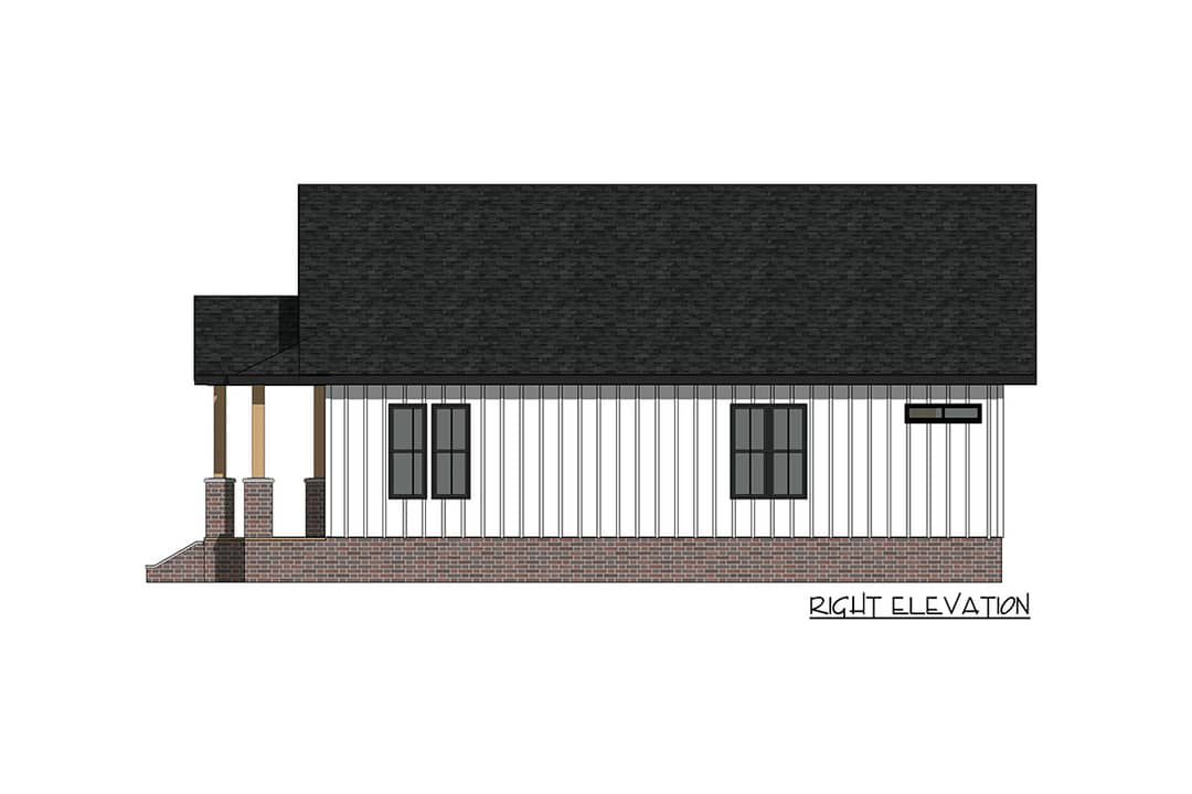 All living spaces fall on a single level, maximizing accessibility and reducing construction complexity.