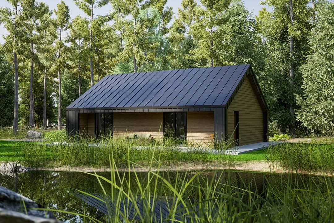 This modern cabin packs **1,048 heated square feet** into a clean, efficient footprint.