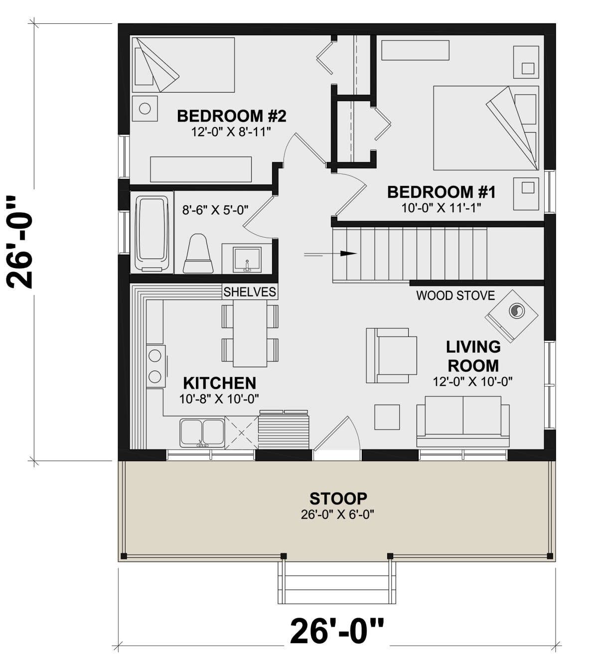The home’s footprint is **26 ft × 26 ft**.