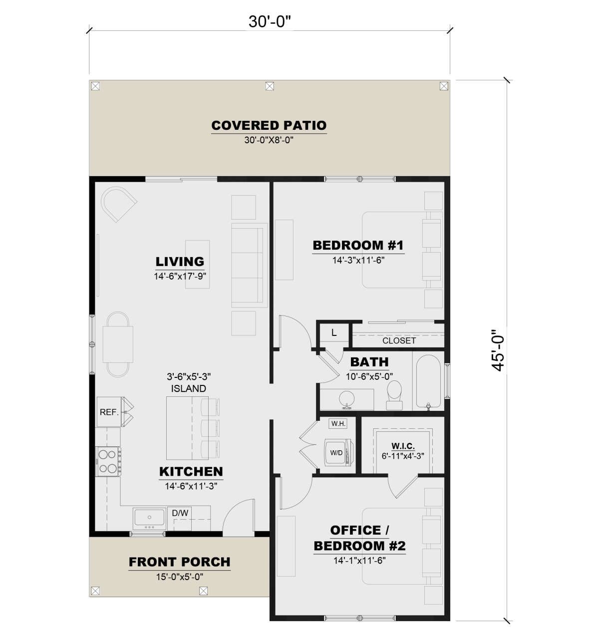 Plan 7568-00043 is a smart, efficient modern farmhouse. With two bedrooms, one bath, a thoughtful split layout, and generous outdoor porch space, it hits the sweet spot between modest size and functionality. It’s ideal for couples, small families, or as a stylish secondary home, where simplicity, comfort, and charm matter most.