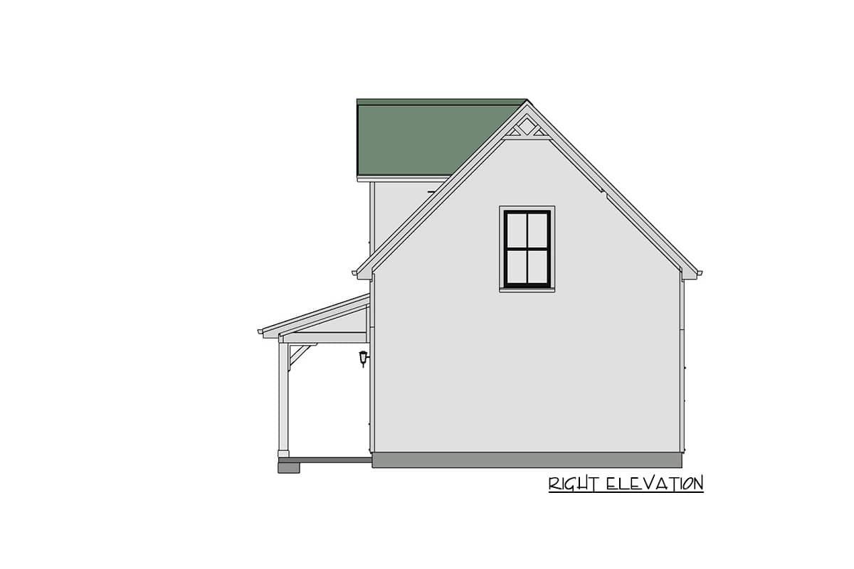 Though not shown, the roof geometry and layout could allow a small rear deck or patio off the back.