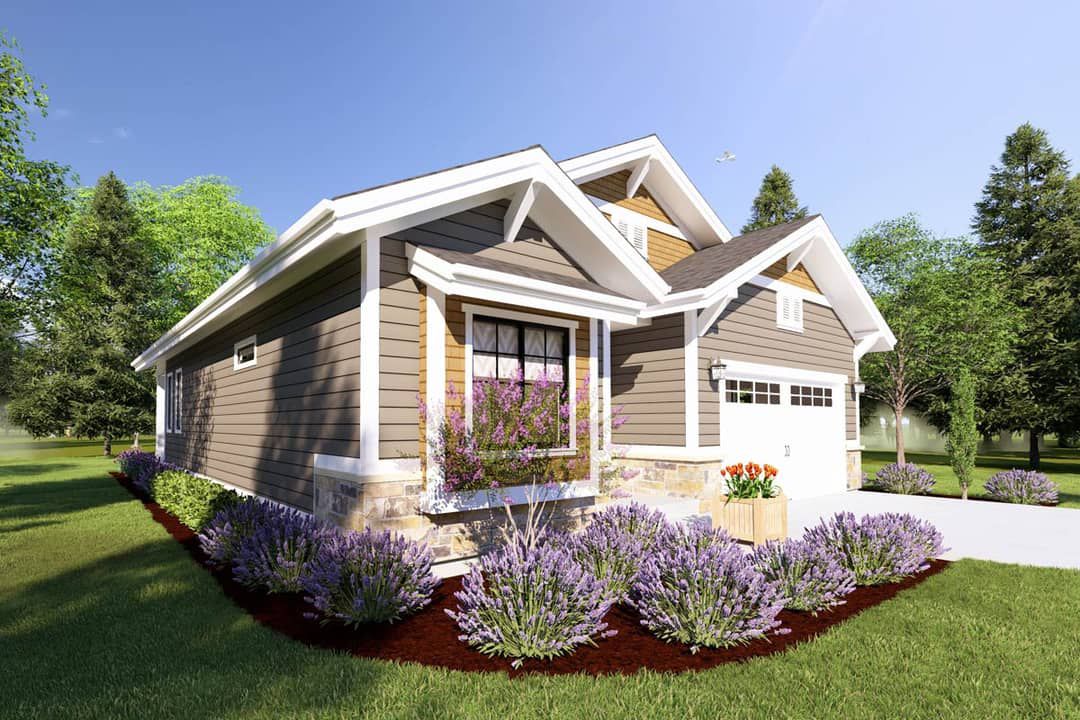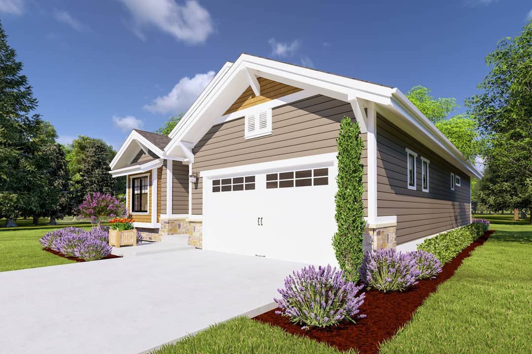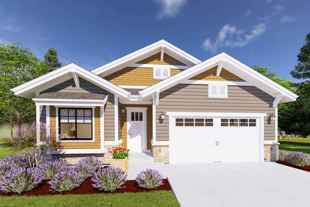 This charming bungalow greets you with **three gables** and a **front-facing two-car garage**.
