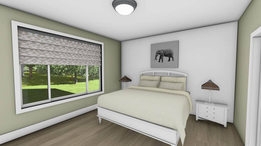 The bedrooms are placed in a **split layout**—the master on one side and the second bedroom on the opposite side—for added privacy.