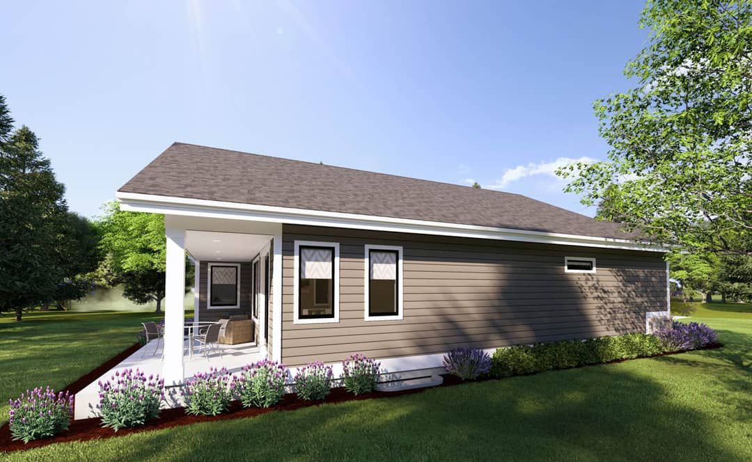 The home includes a front porch (integrated with the gabled façade) that grounds the design.