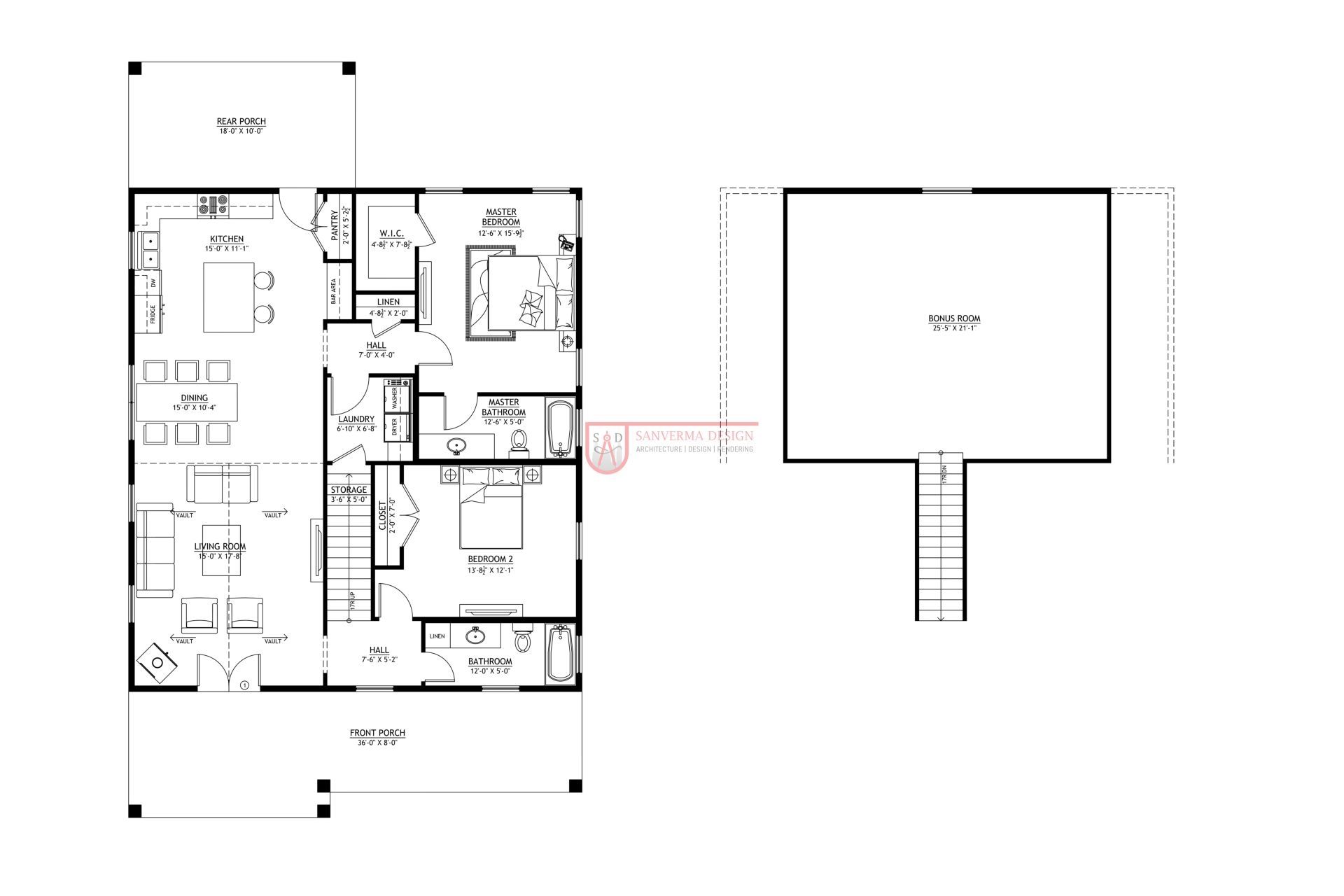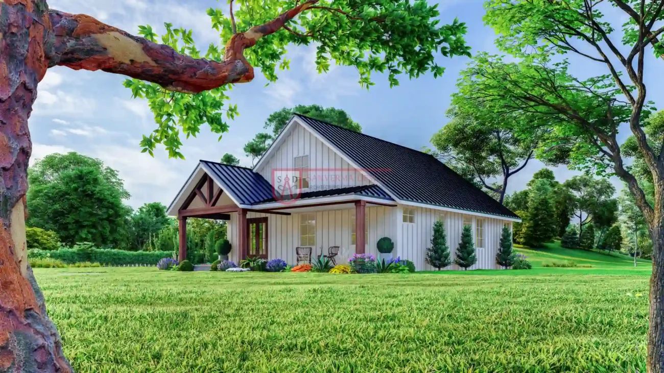 This 2-bedroom, 2-bath modern farmhouse offers the perfect mix of traditional style and modern comfort. With its spacious open layout, inviting front and rear porches, and a versatile bonus room, it suits a variety of lifestyles. The estimated budget makes it an affordable choice for families who want timeless design without sacrificing functionality.