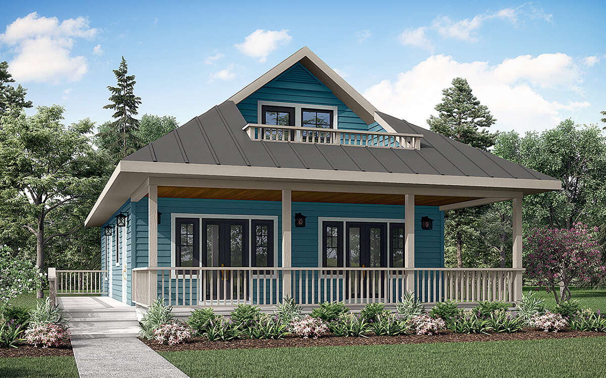 This cottage plan makes smart use of a modest footprint while offering generous outdoor living and expansion potential. By combining an open interior layout, covered porch, side deck, and a bonus room above, the design feels much larger than 1,120 sq ft.