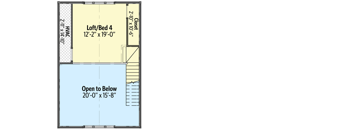 A vaulted loft (216 sq ft) overlooks the living room below and can act as a bedroom, media room, or flex space.