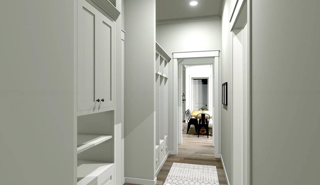 Pantry and storage zones are arranged to support ease of use. The back porch access adds convenience for entertaining or grilling.