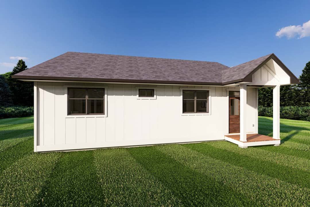 Given its small footprint, surprises like bonus rooms or lofts aren’t part of the base plan. But the open-living core and the rear access point make it feasible to add a small deck, sunroom, or shed-style expansion in future. The structural simplicity supports such modifications with relatively low complication.
