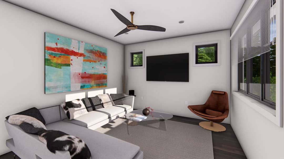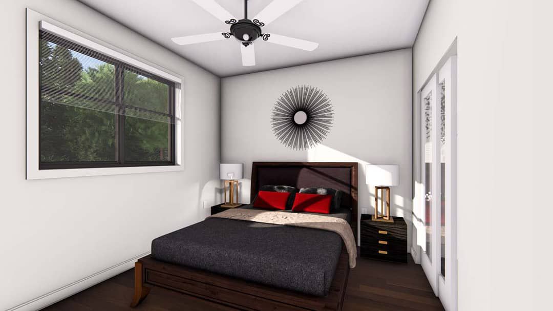 Given its small footprint, surprises like bonus rooms or lofts aren’t part of the base plan. But the open-living core and the rear access point make it feasible to add a small deck, sunroom, or shed-style expansion in future. The structural simplicity supports such modifications with relatively low complication.